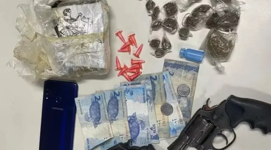 Com os suspeitos, foram apreendidos dois revólveres, um com numeração raspada, munições, 20 porções e um tablete de maconha, 13 pinos de cocaína, um celular e dinheiro. Guias para a remoção e perícia dos corpos foram expedidas.