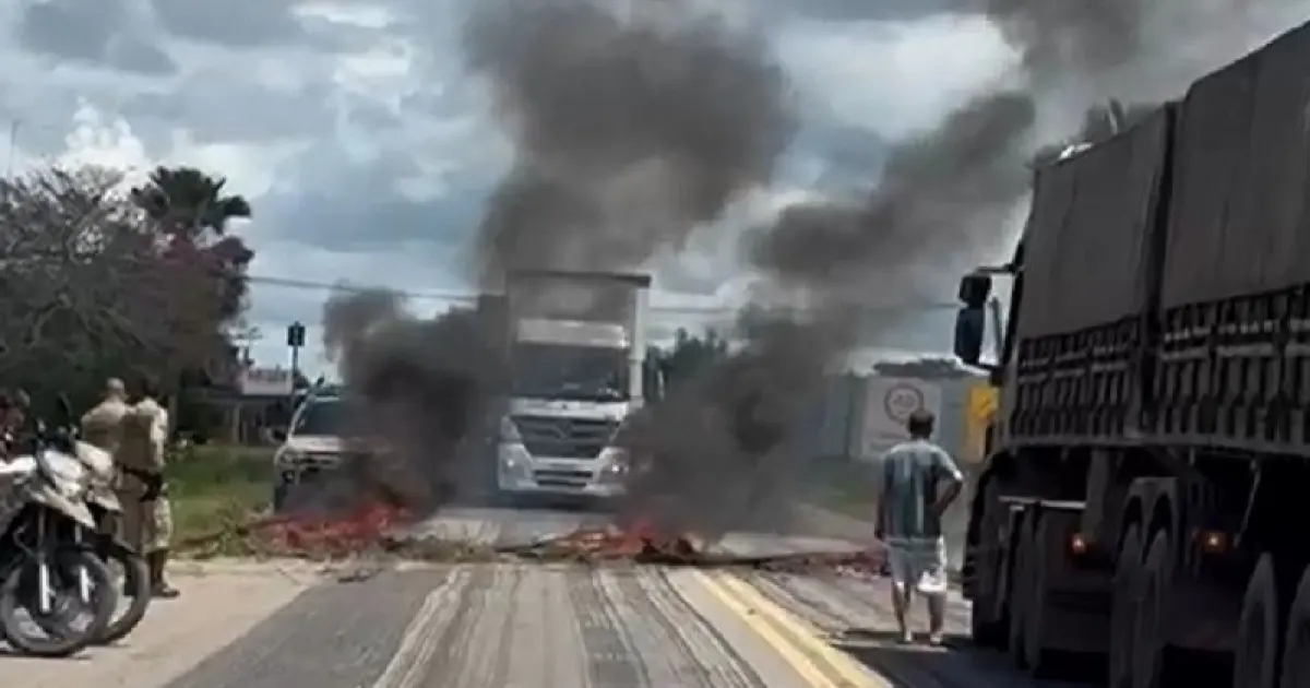 O protesto foi motivado pela ação policial e um grupo de moradores interditou o trânsito na BR-101, gerando congestionamento em ambos os sentidos da via.