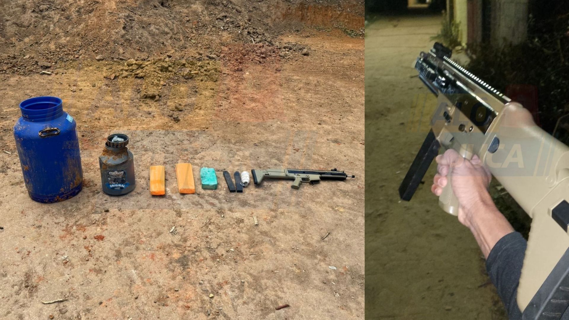 Entre o material apreendido com Ramon Santos da Silva, estava uma submetralhadora calibre 9 mm, sem numeração, acompanhada de dois carregadores alongados e 15 munições do mesmo calibre. Além do armamento, as equipes encontraram uma granada de efeito moral.