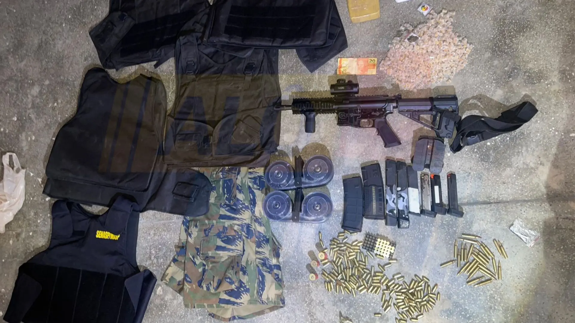 Durante patrulhamento tático, as guarnições visualizaram indivíduos em atitude suspeita que fugiram ao perceber a presença da polícia, entrando em um prédio. Apesar da fuga, foi realizada uma varredura no local, onde os policiais encontraram um fuzil, coletes balísticos, munições de vários calibres, carregadores normais e alongados, casaco camuflado, porções de crack, balança de precisão e R$ 20 em espécie.