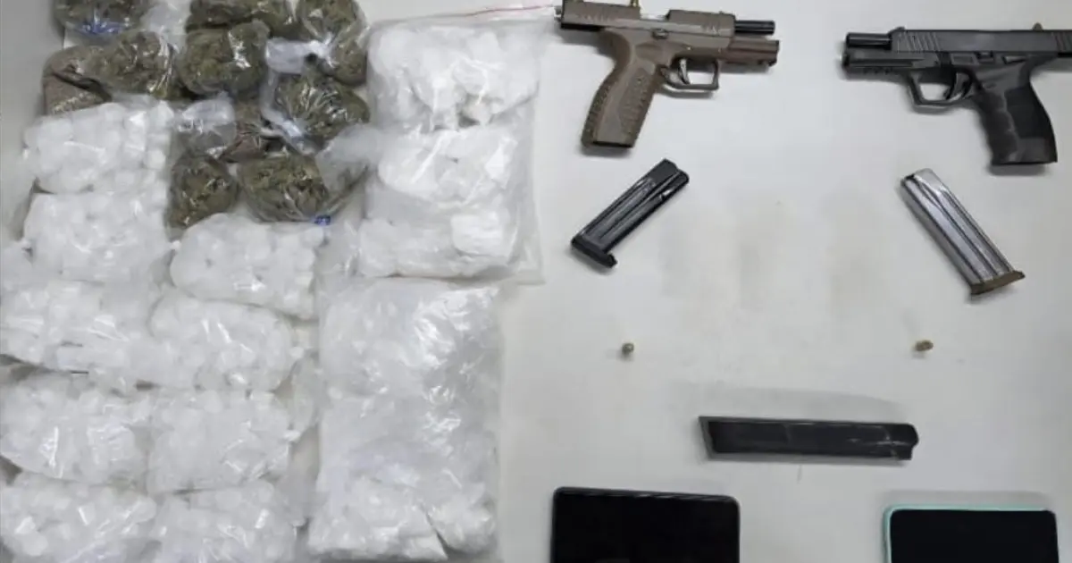 Durante rondas na região, as guarnições visualizaram um grupo de indivíduos que fugiram ao perceberem a aproximação policial, sendo dois deles alcançados. Com a dupla, os militares encontraram duas pistolas calibre 9mm, 47 munições do mesmo calibre, um carregador alongado, 10 pacotes de maconha, 450 pinos e 30 pacotes de cocaína, dois celulares.