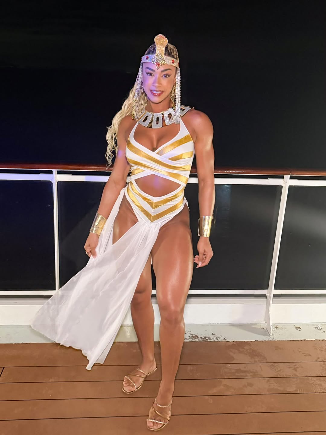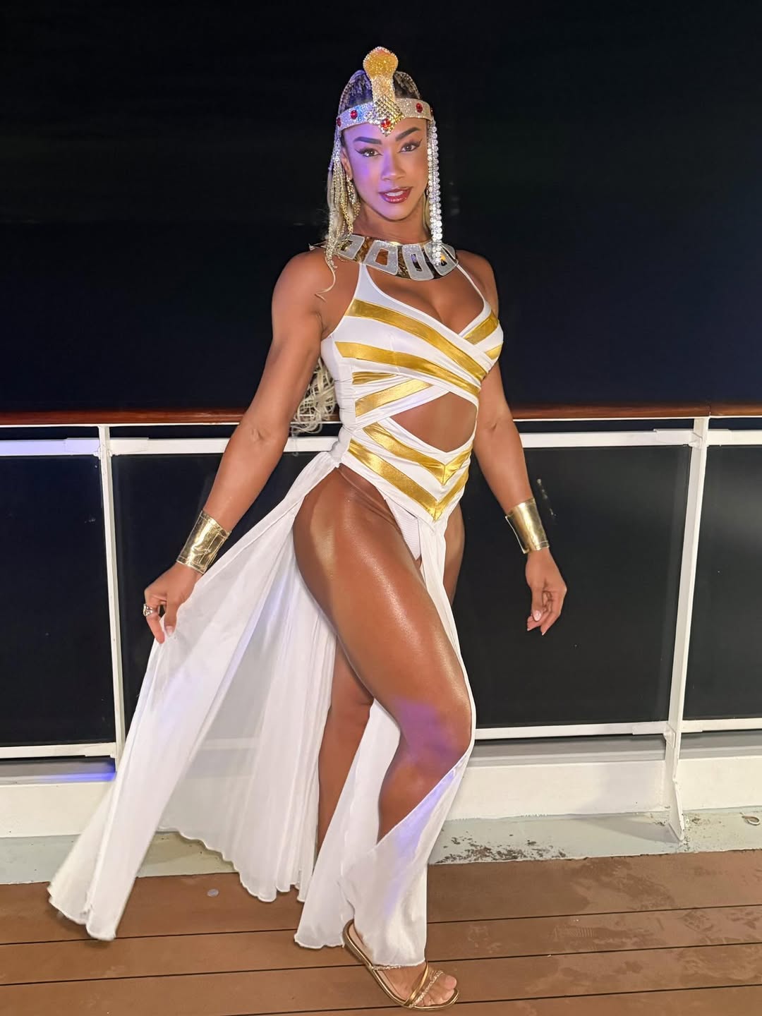 Aline Patriarca impressionou internautas nesta terça-feira (16) ao se fantasiar de Cleópatra para um evento de luxo no Navio MSC Preziosa. A ex-BBB fez questão de exibir o corpão com detalhes quentes na roupa especial.