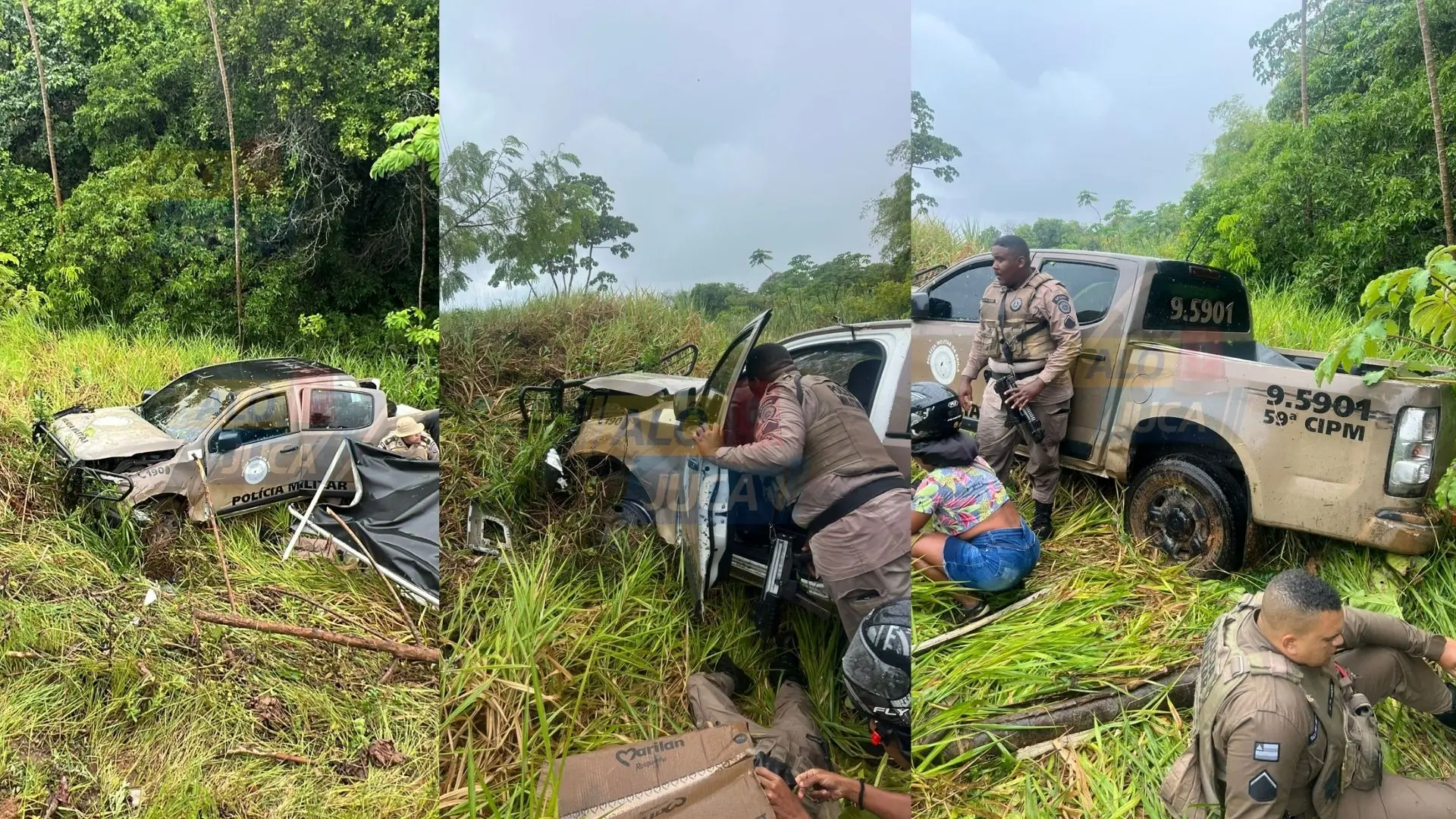 De acordo com informações apuradas pelo Alô Juca, o veículo realizava deslocamento pela região quando o condutor perdeu o controle da direção, fazendo com que a viatura capotasse.